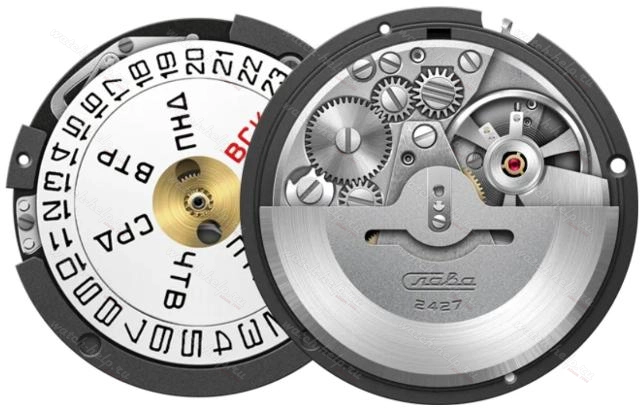 27 — с двойным календарем (дата, день недели), автоподзаводом, центральной секундной стрелкой и противоударным устройством;