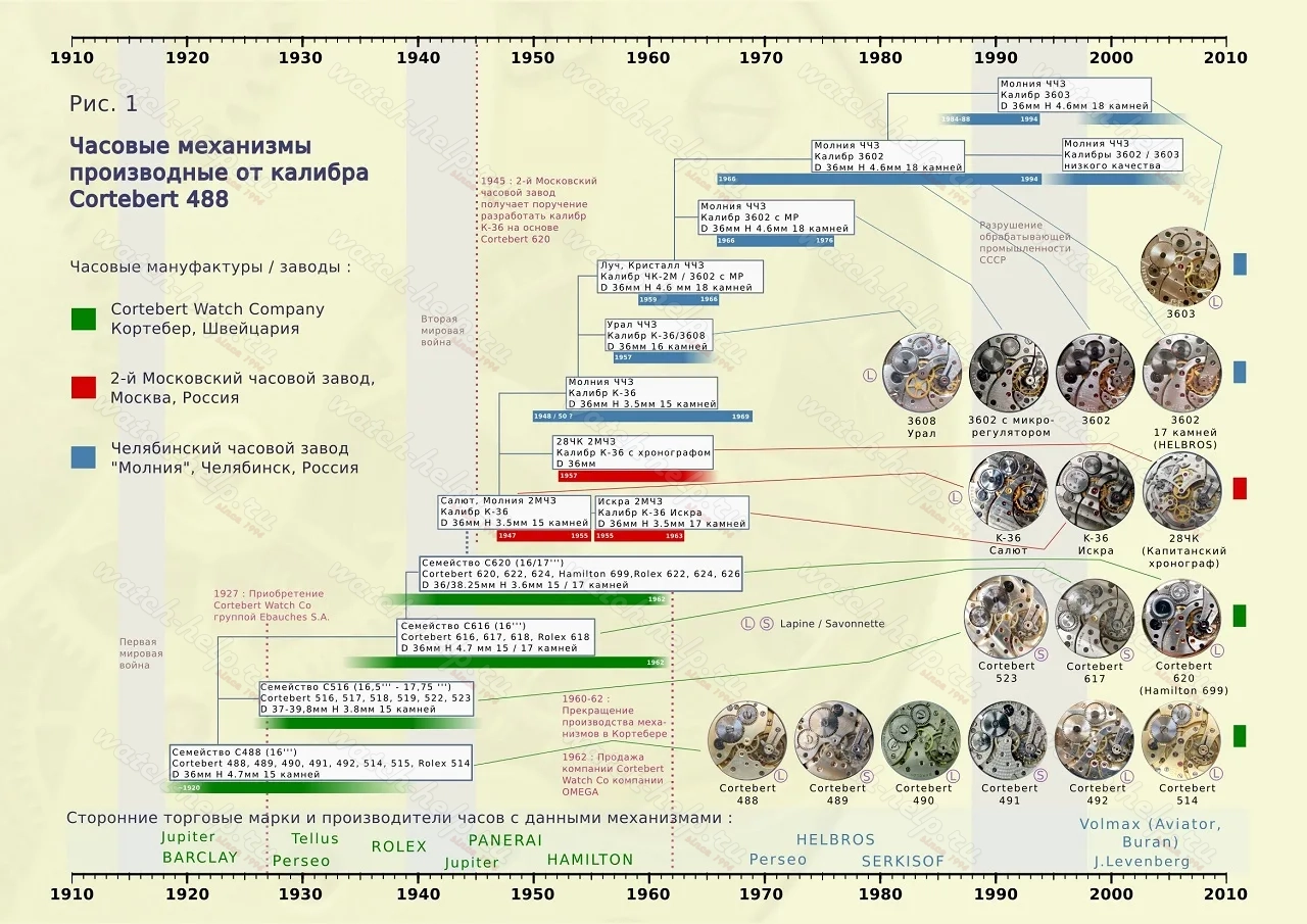 Часовые механизмы производные от калибра Cortebert 488