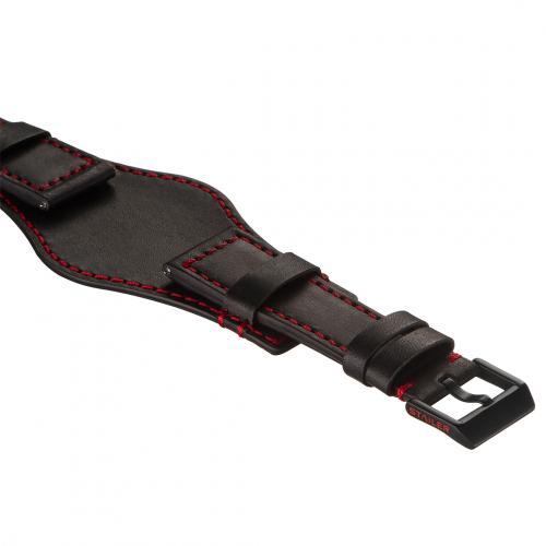 Кожаный ремешок STAILER серии Aviator PAD Черного цвета с прострочкой в тон из обрубной натуральной гладкой кожи для массивных часов.