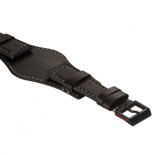 Кожаный ремешок STAILER серии Aviator PAD Черного цвета с прострочкой в тон из обрубной натуральной гладкой кожи для массивных часов.