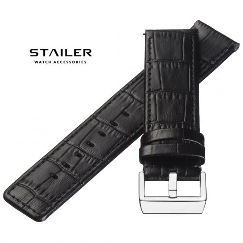Массивный без заужения, Чёрный ремешок STAILER серии Bold из натуральной кожи с тиснением под аллигатора с прострочкой в тон и подкладкой Anfibio.