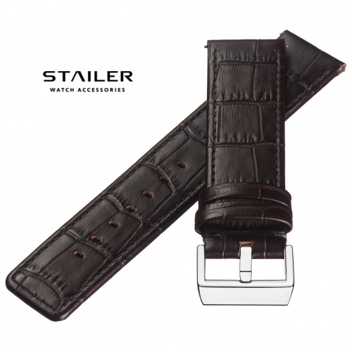 Массивный без заужения, Коричневый ремешок STAILER серии Bold из натуральной кожи с тиснением под аллигатора с прострочкой в тон и подкладкой Anfibio.
