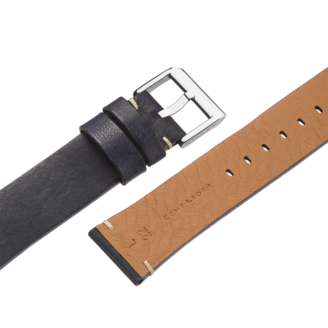 Ремешок из натуральной кожи телёнка, Синего цвета без прошивки.