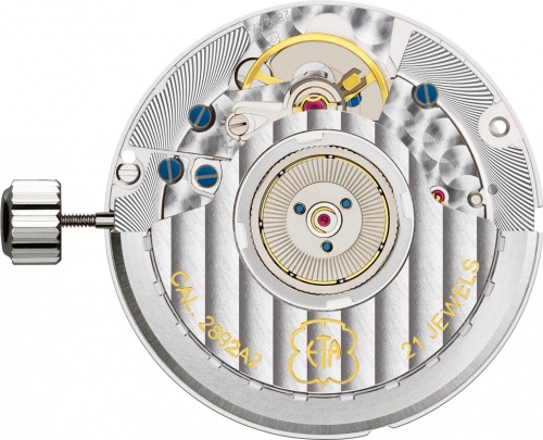 | © ETA ETA's 2892A2 is a extremely popular thin automatic movement | COMPLICATIONS: | Date, Hacking Seconds, Quick Date Correction, Semi-Instantaneous Date Change | |